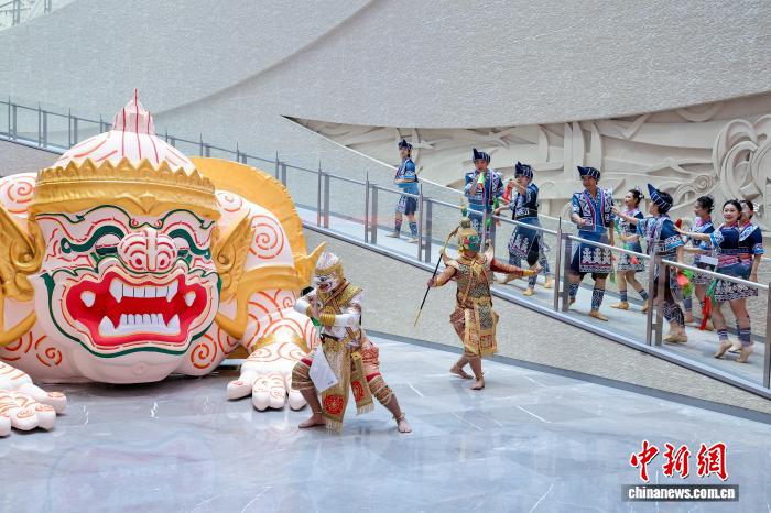 图为落幕式上的泰邦保守人奇戏上演。中新社记者 骆云飞 摄